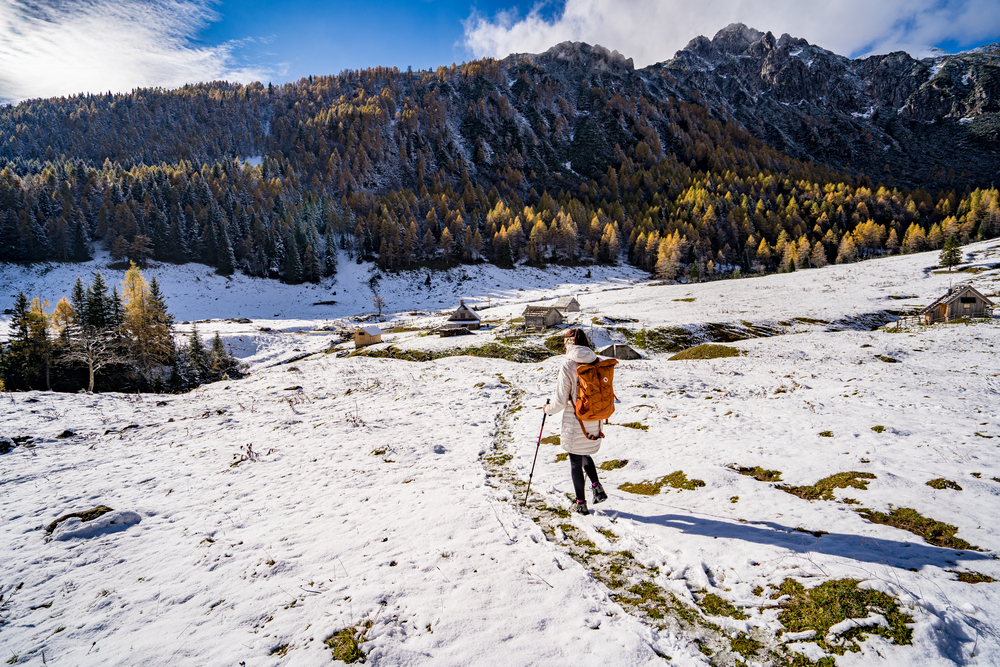Ko stopiš na planino, te pozdravi nekaj pastirskih koč, travniki in tisti občutek miru, ki ga danes redko najdeš. Čeprav je planina znana predvsem po svoji poletni paši, ima prav v poznem jesenskem času poseben čar. Macesni žarijo, zrak je čist in hladen, poti so mirne. Midva sva naredila krožno pot in sva se vračala po krajši poti mimo smučišča Viševnik.