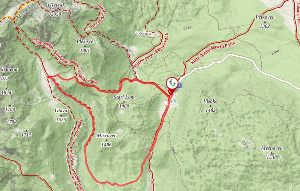 - Izhodišče: Rudno polje (Pokljuka)